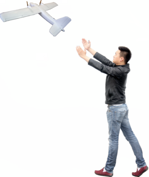 飛行計劃上傳到無人機內(nèi),自動起飛模式下,操作者只需要將飛機拋入空中即可,完全不需要發(fā)射架、彈力繩者其他任何輔助裝置。操作就是如此簡單、輕松。